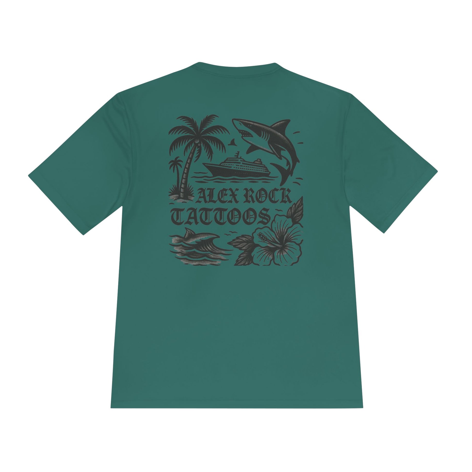 This ALEX ROCK TATTOO design Tee features a KRAQKEN with a Skull, giving off a cool and edgy vibe. Perfect for tattoo enthusiasts and rock fans, this moisture-wicking tee is ideal for casual wear or working out. Great for Halloween parties, music festivals, and everyday street style.